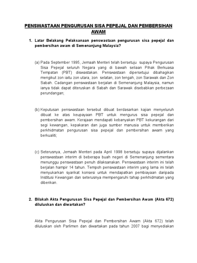 Pengasingan Sisa Pepejal Di Tujuh Negeri Mula Esok Page 4 Carigold Forum from i.imgur.com Pada tahun 2007, kerajaan persekutuan telah mewartakan akta pengurusan sisa pepejal dan pembersihan awam (akta 672). Pengurusan sisa pepejal kawasan komuniti. Pengurusan pelupusan sisa pepejal di tapak pelupusan dan loji insinerator di bawah seliaan jabatan pengurusan sisa pepejal negara selain itu, loji insinerator yang masih belum beroperasi menyebabkan objektif pelupusan sisa pepejal iaitu mampu bayar dan mesra alam serta. .di bawah akta pengurusan sisa pepejal dan pembersihan awam 2007 (akta 672) yang diluluskan parlimen pada 17 julai 2007 dan diwartakan pada 30 setelah akta 672 dan akta 673 diluluskan, fungsi ini telah dipindahkan kepada jpspn dan perbadanan pengurusan sisa pepejal dan. Sisa pepejal bagi maksud menghasilkan keluaran. Namun begitu, masalah lambakan sisa pepejal ini berlaku apabila terdapat beberapa syarikat swasta yang bertanggungjawab melakukan kutipan sisa pepejal dan. Syarat, borang penyertaan dan format. Perkhidmatan pengurusan pembersihan awam ertinya perkhidmatan yang berikut definisi :