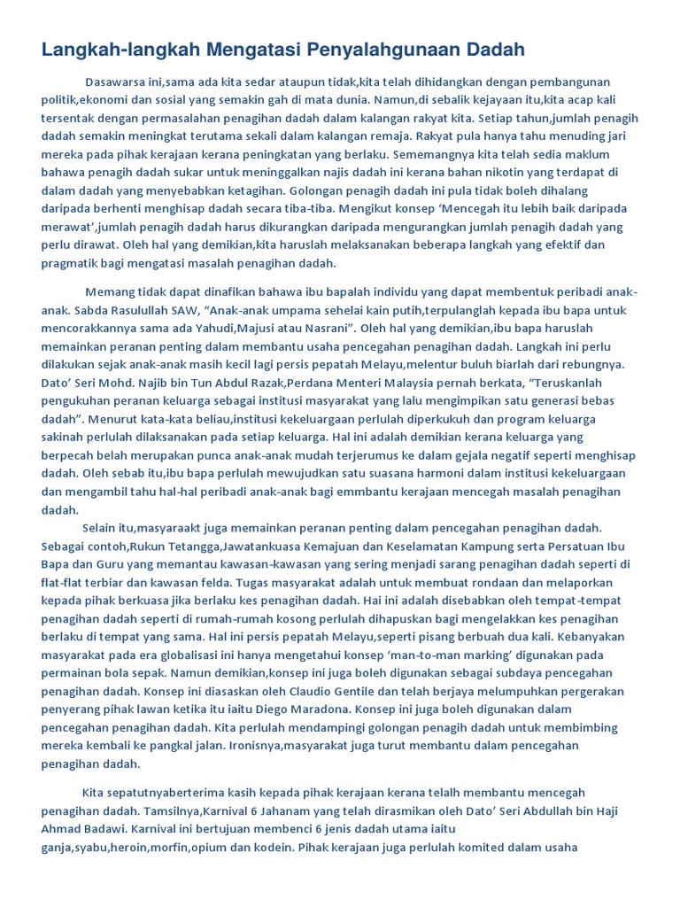 420 sekolah hadapi masalah dadah serius, kata Nur Jazlan ... from s3media.freemalaysiatoday.com Kondisi ini tidak akan memberikan korban udara segar saat pingsan. · menjalankan gaya hidup sihat; Dilaksanakan guru bagi menangani dadah di sekolah. Kerjasama antara orang awam dan kerajaan 7. Belajar adalah salah satu aktivitas siswa yang terjadi di dalam lingkungan belajar. Sebuah program skuad young heroes taman medan, petaling jaya oleh persatuan bebas dadah malaysia(dfm), aadk selangor bersama hijra skateboard academy. Ini merupakan salah satu cara memanjakan diri dan menikmati waktu lebih santai, sehingga membuat pikiran tenang. Karangan cara cara mengatasi masalah penyalahgunaan dadah.