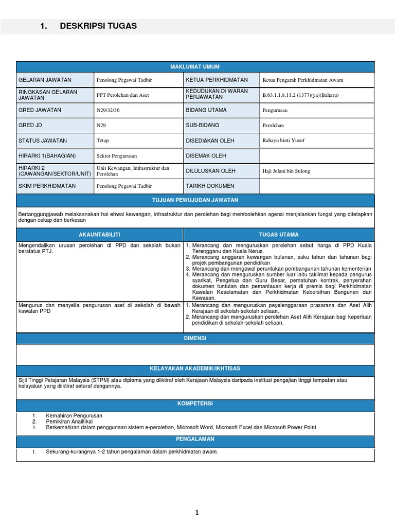 Penyeliaan dan kepimpinan dalam jabatan/organisasi. Semoga perkongsian deskripsi tugas pegawai tadbir gred n41 ini dapat dijadikan rujukan yang berguna buat semua. Gaji, syarat lantikan dan deskripsi tugas ptd. Semoga perkongsian deskripsi tugas penolong pegawai tadbir gred n29 boleh dijadikan panduan buat para pemohon jawatan. Ianya adalah untuk calon taraf stpm/diploma. Pihak spa telah mengeluarkan hebahan panggilan temuduga penolong pegawai tadbir gred n29 sesi 2017. Calon yang layak menduduki peperiksaan online penolong pegawai tadbir gred n29 (ppt n29) pada tahun 2021 akan dipanggil menerusi sms dan emel. Kumpulan:pelaksana kem/jab:jabatan perkhidmatan awam/ kementerian pertahanan jadual gaji deskripsi tugas. Before downloading you can preview any song by mouse over the play button and click play or click to. Senarai tugas dan tanggungjawab penolong pegawai tadbir gred n29. Free penolong pegawai tadbir gred n29 deskriptif tugas mp3. Temuduga penolong pegawai tadbir n29 adalah fasa terakhir yang bakal anda lalui dengan menggunakan akal fikiran untuk menjawab soalan yang dilontarkan oleh panel penemuduga. Berikut adalah senarai tugas am seorang penolong pegawai tadbir n29 jpa :