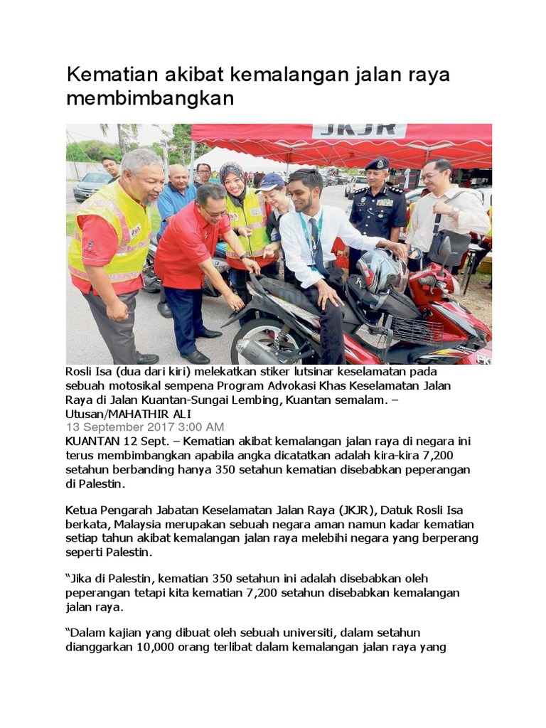 Kemalangan Jalan Raya 2017 08 20 from 3.bp.blogspot.com Belakangan ini,kadar kemalangan jalan raya semakin hari semakin meningkat bagai cendawan tumbuh selepas hujan.secara puratanya,terdapat satu kemalangan yang berlaku pada setiap saat.isu kemalangan jalan raya telah menjadi buah mulut masyarakat dan turut mendapat. Kemalangan jalan raya merupakan salah satu masalah kesihatan awam yang semakin mendapat perhatian sejagat. Keadaan jalan raya juga merupakan antara punca kemalangan berlaku di negara ini. Sebanyak 6,284 kematian akibat kemalangan jalan raya direkodkan di seluruh negara sepanjang 2018, menunjukkan penurunan sebanyak 21% atau 456 kematian berbanding 6,740 kematian pada 2017. Belakangan ini,kadar kemalangan jalan raya semakin hari semakin meningkat bagai cendawan tumbuh selepas hujan.secara puratanya,terdapat satu kemalangan yang berlaku pada setiap saat.isu kemalangan jalan raya telah menjadi buah mulut masyarakat dan turut mendapat. To find out more complete and clear information or images. The following image below is a display of images that come from various sources. Statistik kemalangan jalan raya 2019.
